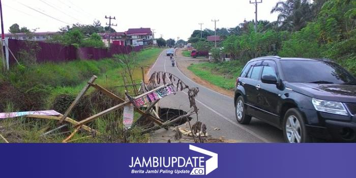JAMBIUPDATE.CO, MUARATEBO - Jalan utama menuju Rimbo Bujang tepatnya di Jalan 9 Kelurahan Wirotho Agung, sangat mengkhawatirkan. Miris, kondisi jalan nyaris. Kiri dan kanan jalan sudah ambrol selebar satu meter.