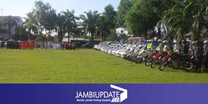 JAMBIUPDATE.CO, JAMBI - Kepolisian Daerah (Polda) Jambi dan jajaran, Kamis (30/6) menggelar apel pengamanan lebaran 2016 dengan sandi Operasi Ramadniya. Apel digelar di lapangan Polresta Jambi, sekitar pukul 09.00 WIB.