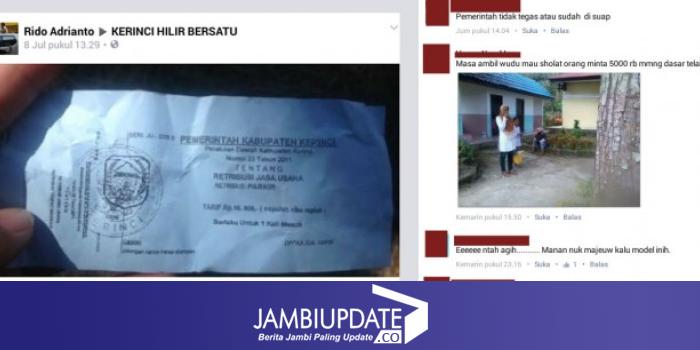 JAMBIUPDATE.CO, JAMBI-Pungutan selangit di objek-objek wisata di Danau Kerinci menjadi sorotan di media sosial facebook.