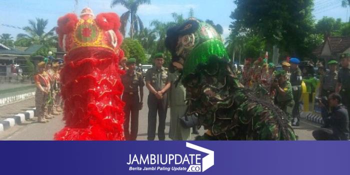 JAMBIUPDATE.CO, JAMBI - Dari Bandara Jambi, Danrem 042/Garuda Putih Kolonel Inf Refrizal langsung menuju Makorem. Penyambutan berlangsung meriah. Bahkan, dua ekor singa ikut dalam penyambutan ini.