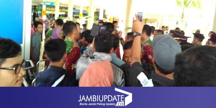 JAMBIUPDATE.CO, JAMBI - Kedatangan Presiden RI Joko Widodo di Provinsi Jambi, membuat pengunjung di Bandara Sulthan Thaha Jambi , terlihat antusias dan histeris.
