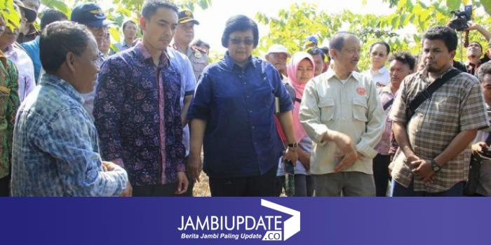 iklan Menteri LHK Siti Nurbaya bersama Gubernur Jambi dan rombongan saat berada di HTR di Desa Hajran Sabtu (13/8).
