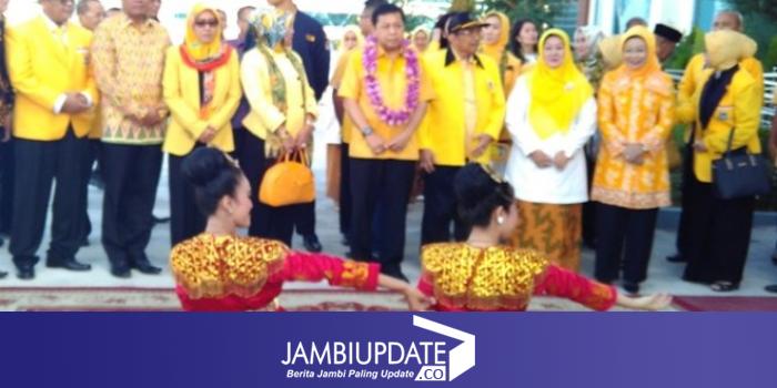 Pantauan jambiupdate.co, kedatangan Setya Novanto berserta rombongan langsung disambut oleh Ketua DPD I Golkar Jambi Zoerman Manap, Walikota Jambi yang juga Ketua Harian DPD I Golkar Jambi SY Fasha, Ivan Wirata, Sukandar beserta para petinggi dan kader Golkar Jambi.