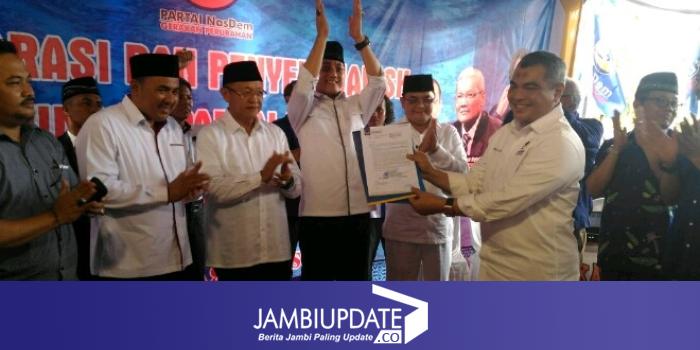 Ini setelah ketua DPW partai NasDem Jambi, Agus S Roni didampingi Korwil DPP NaDem menyerahkan dukungan, sore ini (24/8).