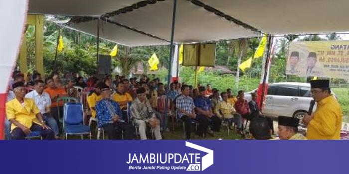 Kali sosialisasi bertempat di halaman kantor PK Partai GOLKAR Kecamatan Mestong Pal 13 Desa Pondok Meja, Muaro Jambi, Kamis (1/9).
