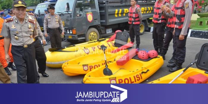 Pantauan dilapangan satu persatu alat yang akan dingunakan dalam pertolongan jika terjadi bencana dilihat oleh Wakapolda Jambi dengan didampingi unsur terkait, mulai dari perahu karet, alat pemotong besi, hinga alat penyelamatan. Dalam Apel gelar Pasukan ini tampak dihadiri Dandrem 042/Gapu yang diwakili oleh Mayor Inf Jalu Wibowo Kasi Log Korem 042 Gapu, Kepala BMKG Jambi Nurangesti Widyastuti, Kepala Basarnas Jambi Juanda Sodo, dan dari BPBD Jambi yang diwakili oleh Dalmanto. (pds)