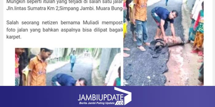 JAMBIUPDATE.CO, MUARA BUNGO - Beberapa hari terakhir media nasional sibuk memberitakan tentang buruknya kwalitas pengaspalan di KM 2 Simpang Jambi Kelurahan Manggis Muara Bungo yang bersumber dari akun facebook salah satu warga Bungo.