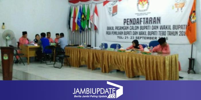 KPUD Tebo memutuskan untuk meneruskan proses pendaftaran Pasangan Hamdi-Harmain dengan hanya 3 Partai Pengusung yaitu Demokrat, Nasdem, Dan PKB dengan 8 kursi di DPRD Tebo. Sedangkan Untuk Gerindra yang memiliki 4 kursi di DPRD Tebo, KPUD Tebo akan menunggu rekomendasi aslinya hingga pukul 24.00 WIB malam ini.