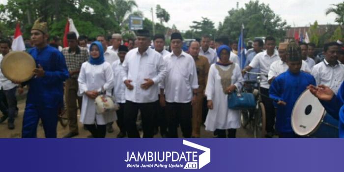 JAMBIUPDATE.CO, SENGETI- Bakal Calon Bupati Kabupaten Muarojambi yang diusung oleh Partai Demokrat, PDIP dan Hanura, Agustian Mahir (AM)- Suswiyanto saat ini telah tiba di KPUD Muarojambi untuk melakukan pendaftaran.