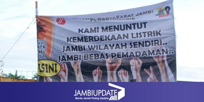 JAMBIUPDATE.CO, JAMBI Minggu (25/9) Aliansi Masyarakat Jambi Peduli Listrik (AMJPL) menggelar aksi di kawasan Kantor Gubernur Jambi. Aksi ini merupakan protes terhadap PLN yang dinilai sudah bobrok dan sudah sangat merugikan masyarakat Jambi.