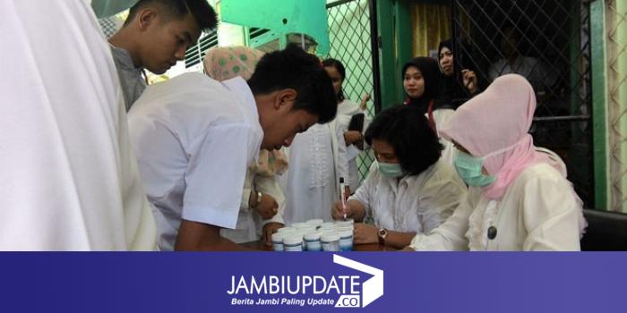 JAMBIUPDATE.CO, JAMBI - BNN Provinsi Jambi melakukan tes urine terhadap siswa siswi sekolah Yayasan Pertiwi Kota Jambi, Rabu (28/9).
