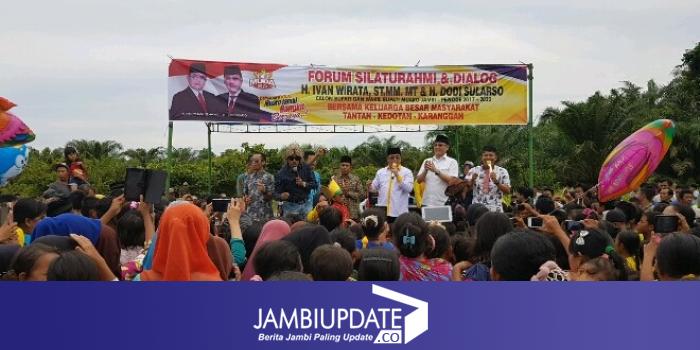 JAMBIUPDATE.CO, JAMBI - Kerinduan masyarakat Desa Tantan, Keranggan dan Kedotan, Kecamatan Sekernan, Kabupaten Muaro Jambi, kepada Ivan Wirata dan Dodi Sularso akhirnya terobati dengan digelarnya Forum Silaturrahim dan Dialog  Masyarakat dengan Calon Bupati yang dikenal dengan IDOLA , Sabtu  (1/10) sore, di lapangan sepak bola Desa Tantan.