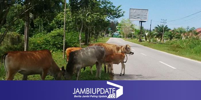 JAMBIUPDATE.CO, MUARASABAK - Sampai saat ini masih banyak hewan ternak seperti sapi dan kambing yang berkeliaran di badan jalan utama di wilayah Tanjabtim. Bahkan menjadi salah satu penyebab kecelakaan. Karenanya, Bupati menginstruksikan ke Kasat Pol PP untuk menangkap hewan yang berkeliaran di jalan.