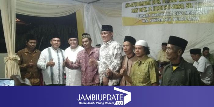 JAMBIUPDATE.CO, JAMBI Dalam rangka mempererat tali silahturahim, Pasangan Idola Bupati Muaro Jambi, H.Ivan Wirata.ST.MM.MT dan H.Dodi Sularso.SH bersilaturahmi dengan Masyarakat Desa Mekarsari Kecamatan Kumpeh, Muaro Jambi, Minggu (9/10) malam.