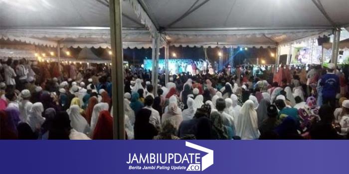 JAMBIUPDATE.CO, JAMBI - Ribuan warga sudah berdatangan memadati lapangan Kantor Walikota Jambi, Selasa (11/10) malam. Mereka yang mayoritas mengenakan pakaian putih berbondong-bondong bersama keluarga untuk menyaksikan Tausiyah 5 ustadz kondang dalam memperingati 1O Muharram 1438 H.