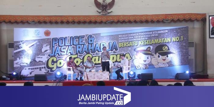 JAMBIUPDATE.CO, JAMBI Generasi muda memiliki peran yang kuat dalam penanggulangan kecelakaan berkendara. Diantara generasi muda tersebut termasuklah didalamnya kalangan Mahasiswa. Ini menjadi salah satu alasan mengapa kepolisian bersama Jasa Raharja mengadakan event akbar bertajuk Police & Jasa Raharja Go To Campus.