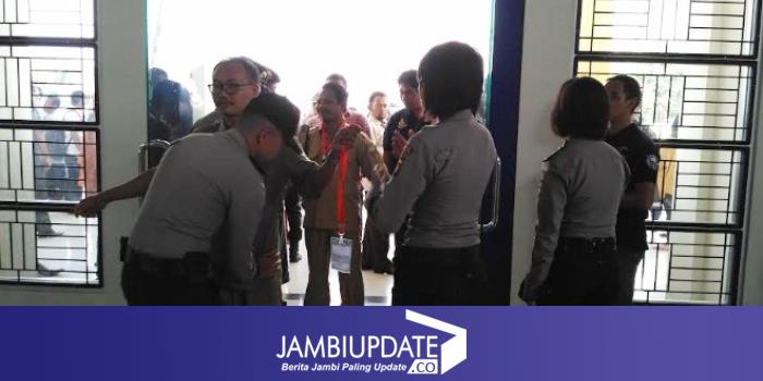 Pantauan Jambiupdate.co, aparat kepolisian bahkan melakukan pemeriksaan satu per satu dari tamu yang memasuki ruang rapat dilaksanakan.