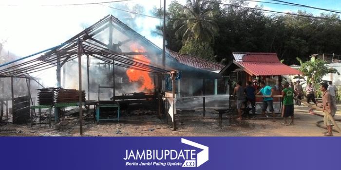 JAMBIUPDATE.CO, MUARATEBO Gudang penyimpanan Bahan Bakar Minyak (BBM) di jalan Dewi Sartika Poros, Kelurahan Wirotho Agung, Kecamatan Rimbo Bujang, Selasa (1/10) sekitar pukul 15.40 WIB ludes terbakar.