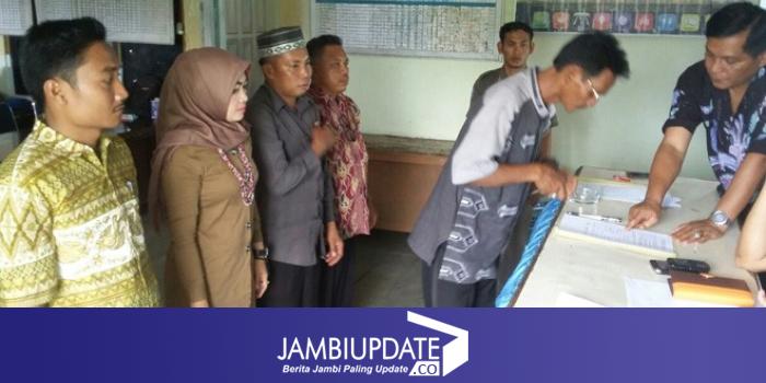 JAMBIUPADTE.CO, MUARASABAK - Seluruh Sakades yang maju dalam Pilkades diwajibkan menandatangani Deklarasi Pilkades Damai. Seperti yang dilakukan Cakades yang maju dalam Pilkades di Desa Teluk Kijing Kecamatan Nipah Panjang. Tiga Cakades yang maju yakni M. Ali, Syaiful dan Hamri.