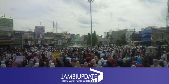 JAMBIUPDATE.CO, JAMBI - Ribuan massa dari gabungan Ormas islam, Jumat (4/11) menggelar demo bela islam terkait dugaan penistaan agama yang dilakukan Gubernur Non Aktif DKI Jakarta, Basuki T Purnama alias Ahok.