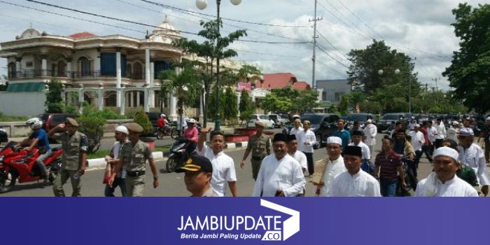 JAMBIUPDATE.CO, MUARABUNGO - Ratusan umat muslim di Kabupaten Bungo hari ini (4/11) melakukan aksi damai usai melakukan sholat Jumat di Massjid Agung Al-Mubaraq Bungo menuju Mapolres Bungo sekitar pukul 13.00 WIB.