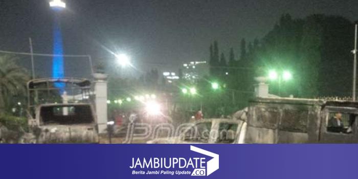 iklan Dua kendaraan operasional Polri hangus terbakar di depan Istana Presiden, Jalan Medan Merdeka Selatan, Gambir, Jakarta Pusat, Jumat (4/11). Fathan Sinaga/JPNN.com