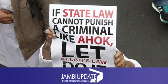 iklan Salah satu atribut yang dibawa oleh demonstran 4/11. Foto: Ricardo/JPNN.com