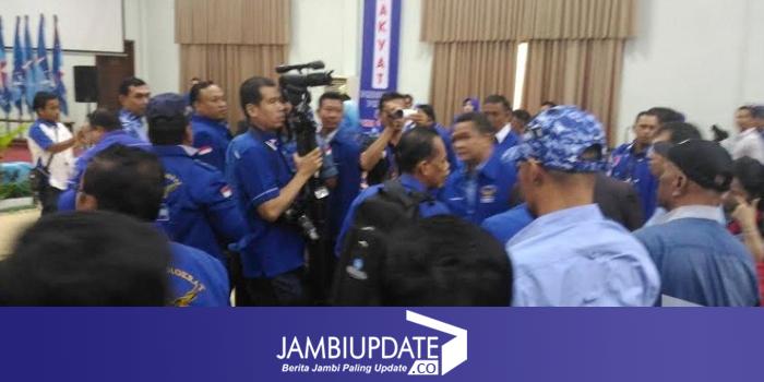 JAMBIUPDATE.CO, JAMBI - Pembukaan Musda Demokrat Provinsi Jambi berlangusng panas. Ketegangan berlangsung setelah sambutan ketua BP-OKK DPP Partai Demokrat Jenderal TNI (Purn) Pramono Edhi, siang ini (7/11).