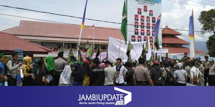 JAMBIUPDATE.CO, JAMBI - Peringatan hari jadi Kota Sungai Penuh yang ke 8 2016, di gedung DPRD Kota Sungai diwarnai dengan aksi demontrasi puluhan mahasisws yang tergabung dalam organisasi HMI cabang Kerinci.