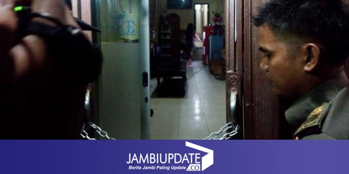 Petugas yang menyegel salah satu tempat hiburan di Kota Jambi.