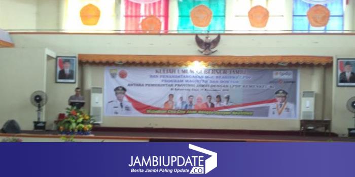 Bertempat di Balairung Universitas Jambi (Unja), Senin (14/11). Acara penandatanganan MoU sekaligus sosialisasi Beasiswa LPDP ini, dihadiri ribuan generasi muda Provinsi Jambi.