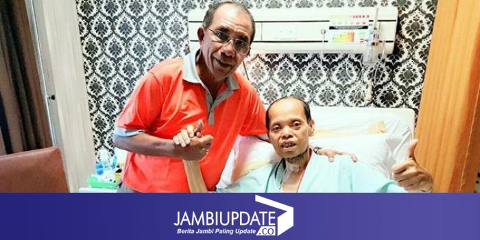 Sembari mencoba tersenyum, Sutan dan Max berfoto bersama. Meski sakit dan tubuhnya masih dikelilingi selang, keceriaannya tak memudar.