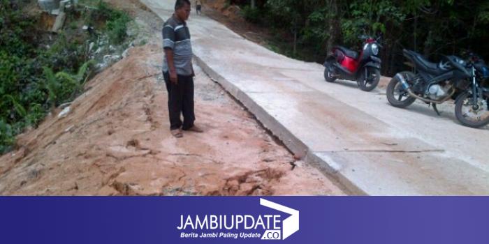 Pengerjaan jalan di Dusun Renah Jelmu, Kecamatan Tanah Tumbuh saat ini dikeluhkan warga, karena baru dibangun tetapi kini longsor.