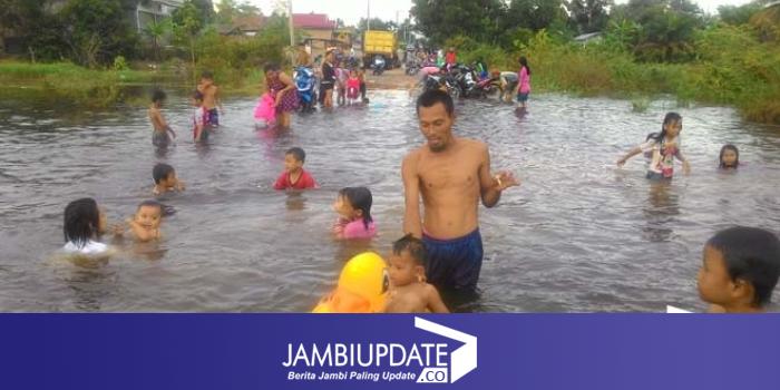 JAMBIUPDATE.CO, BATANGHARI - Banjir yang menggenangi jalan di belakang Pasar Baru (Jalan AMD) selama 3 hari belakangan membuat jalan lumpuh total. Namun ada pemandangan yang berbeda, warga Muara Bulian dan sekitar tidak menggangap banjir ini sebagai bencana. Tapi dijadikan tempat rekreasi.