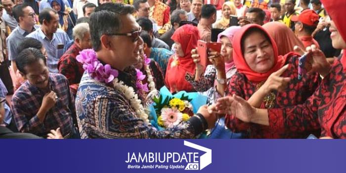 Prosesi penyambutan yang dipimpin Sekretaris Daerah Kota Jambi H. Daru Pratomo itu, diawali dengan pengalungan rangkaian bunga dan tabuhan kompangan. Tampak juga sebagian guru membentangkan spanduk bertuliskan apresiasi atas diterimanya anugerah Kihajar, sementara sebagian lain berdesakan menjabat tangan sembari menyampaikan ucapan selamat kepada Walikota. Salah seorang guru bahkan terlihat haru dan sempat meneteskan air mata.