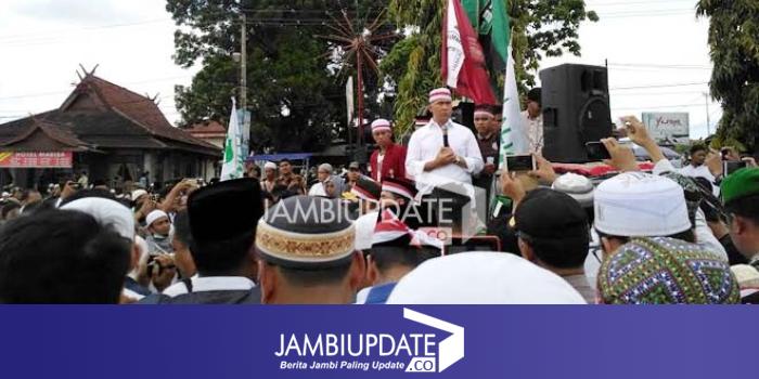 Walikota Jambi, Sy Fasha saat memberi sambutan di tengah ribuan aksi demo bela islam.