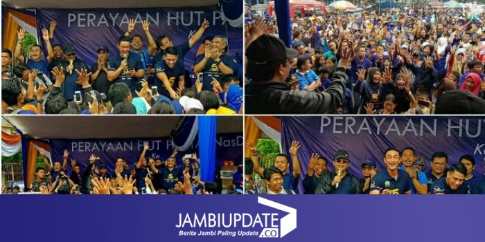 JAMBIUPDATE.CO, JAMBI Calon Bupati Muaro Jambi nomor urut 4, Ivan Wirata, mengikuti Gerak Jalan Sehat dalam Rangka HUT Ke 5 Partai Nasdem di seputaran Lapangan Kantor Gubernur Jambi, Minggu (4/12) pagi.
