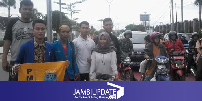 Jumta (9/12) siang, Puluhan Mahasiswa PMII Komisariat IAIN STS Jambi turun langsung ke jalan untuk menggalang dana.