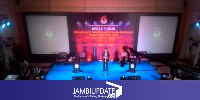 JAMBIUPDATE.CO, SAROLANGUN - Debat publik kandidat Calon Bupati dan Calon Wakil Bupati Sarolangun yang diselenggaralan oleh Komisi Pemilihan Umum (KPU) Sarolangun Resmi dibuka, Sabtu (10/12) Malam.