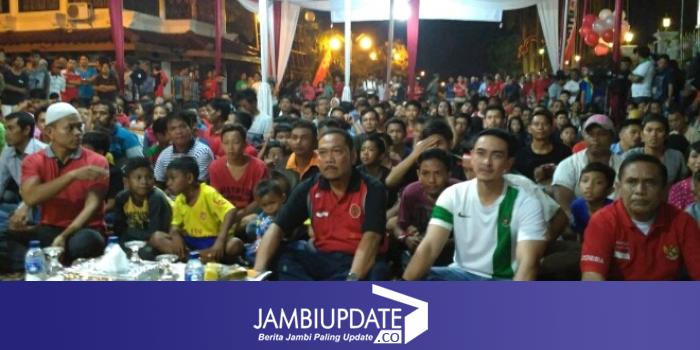 Pantauan jambiupdate.co, pada acara tersebut tak hanya dihadiri kaum laki-laki saja, para perempuan dan anak-anak pun turut bersorak mendukung timnas Indonesia.