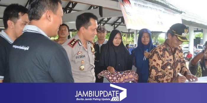 Kapolres Muarojambi, AKBP Dedy Kusuma Siregar bersama Komisioner KPUD Muarojambi menandatangi deklarasi kampanye damai. Jelang pemungutan suara, polisi siagakan personil.