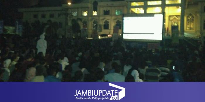 JAMBIUPDATE.CO, JAMBI - Ratusan masyarakat Jambi memadati lapangan kantor Gubernur Jambi, Rabu (14/12) malam. Ini dalam rangka memeriahkan nonton bareng pada laga final leg kedua AFF 2016 Timnas Indonesia Vs Thailand.