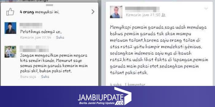 JAMBIUPDATE.CO, MUARABUNGO Pasca Kekalahan di Final Piala AFF 2016 atas Thailand, Timnas Indonesia tetap banjir pujian dari masyarakat. Tak hanya pujian hinaan juga menghantam skuat Garuda besutan Alfred Riedl tersebut.