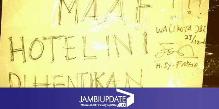 Hal tersebut dilakukannya saat mendatangi lokasi tersebut. Tampak orang nomor satu di Kota Jambi itu menunjukkan kertas yang bertuliskan "MAAF !! HOTEL INI DIHENTIKAN OPERASINYA!
