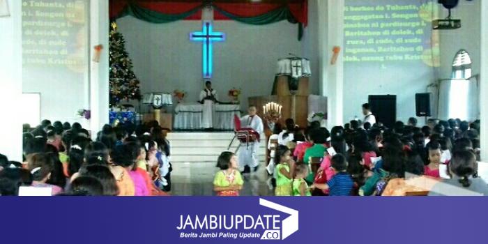 JAMBIUPDATE.CO, SAROLANGUN - Ratusan umat kristiani di Kabupaten Sarolangun mengelar perayaan natal yang jatuh pada tanggal 25 desember (hari ini, red). Dari pantauan jambiupdate.co di gereja HKBP Sarolangun, umat kristian mengikuti rangkaian acara natal dengan penuh suka cita sejak malam tadi (24/12) dan akan terus berlangsung hingga 26 desember dengan mengambil tema Johanes 1 : 4 " Di dalam Dia Ada Hidup, dan Hidup Ada Terang Manusia ".