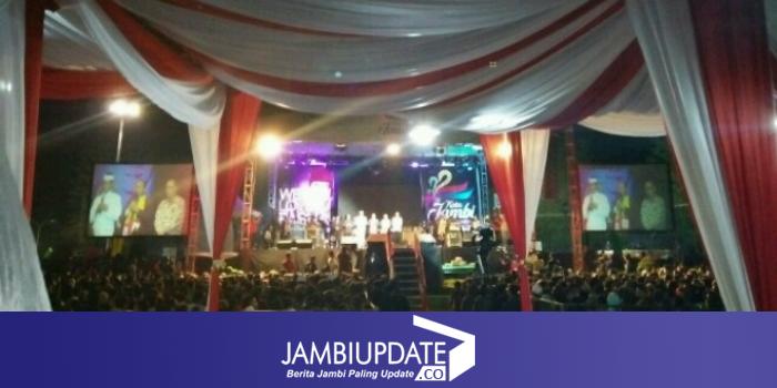 Ribuan warga menanti malam pergantian tahun di hibur dengan penampilan kesenian Kota Jambi dan Repulik Band dari Ibu Kota.