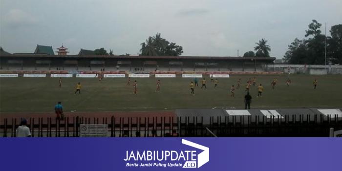 JAMBIUPDATE.CO, JAMBI- Kesebelasan Muarojambi pada pertandingan kedua menahan imbang Tanjab Barat 1-1, pada laga yang berlangsung di Stadion KONI Tri Lomba Juang, Selasa (10/1)