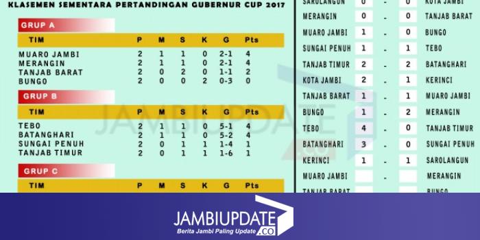 Untuk klasemen akhir di Grup C ini, Kota Jambi berada di posisi puncak dan memastikan diri lolos ke partai semi final dengan mengantongi 4 poin. Sarolangun di posisi kedua dengan 2 poin dan Kerinci berada paling bawah dengan 1 poin. (pds)