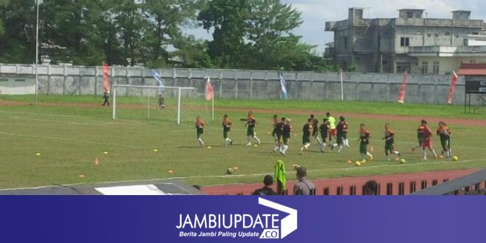Pantauan di lapangan saat ini kedua tim tengah melakukan pemanasan. Merangin mengenakan kostum kuning sementara Kota Jambi kostum hijau. (pds)