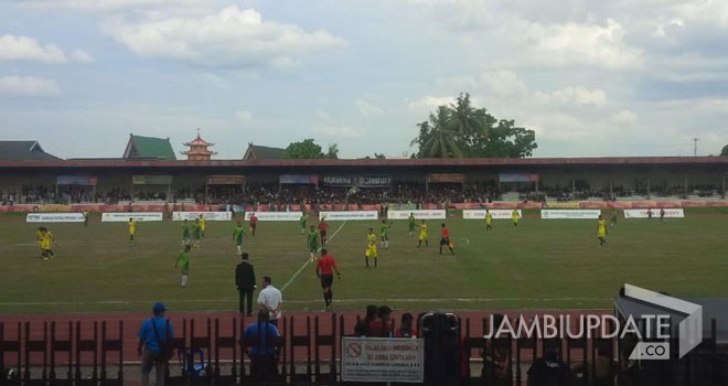 JAMBIUPDATE.CO, JAMBI - Babak pertama pertandingan PS Kota Jambi kontra PS Merangin, usai. Kedudukan sementara 1-0 untuk PS Kota Jambi.
